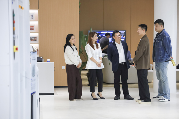 星云股份副董事長兼總裁劉作斌帶領客戶嘉賓參觀、體驗電動自行車、電動摩托車電池檢測