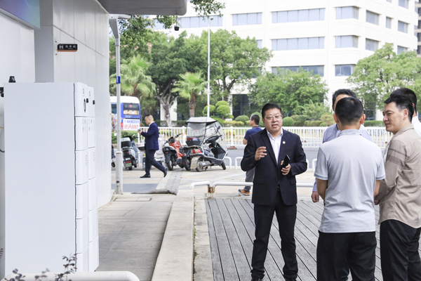 星云股份副董事長兼總裁劉作斌帶領客戶嘉賓參觀、體驗電動自行車、電動摩托車電池檢測
